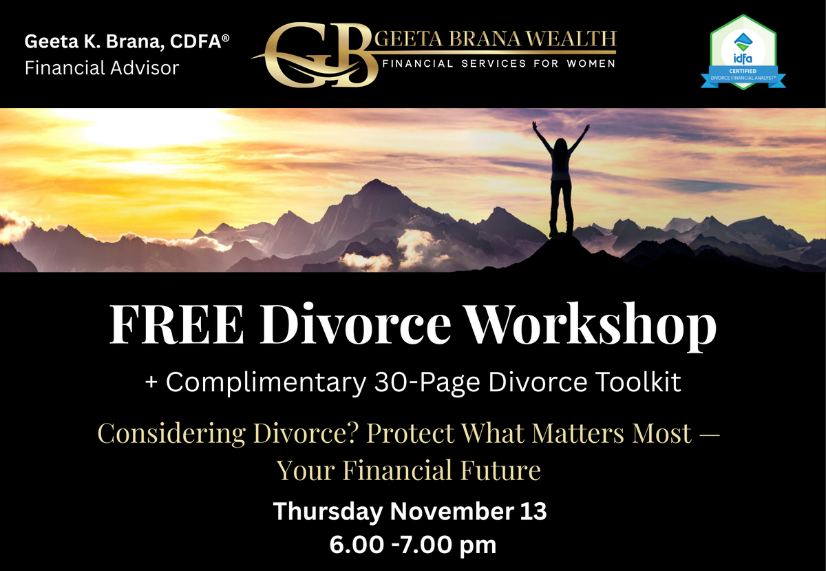 Divorce can be overwhelming — but the financial mistakes are avoidable when you know what to look out for. That’s why I’m hosting a FREE live Zoom Divorce Workshop designed to help you protect what matters most — your financial future.